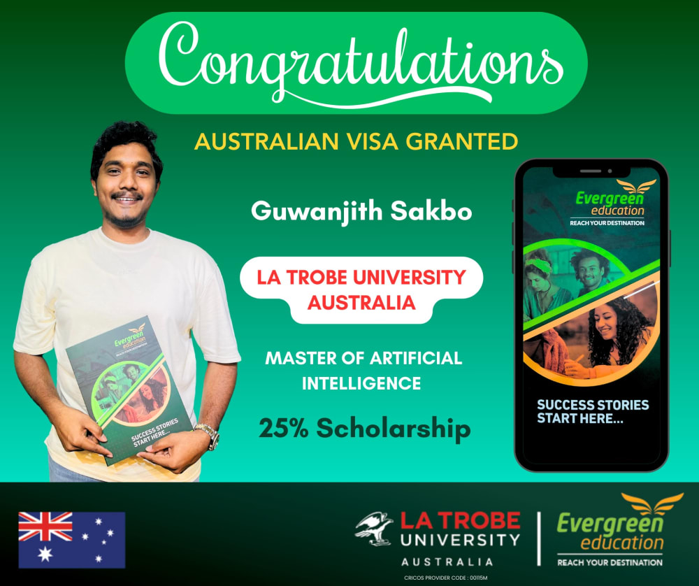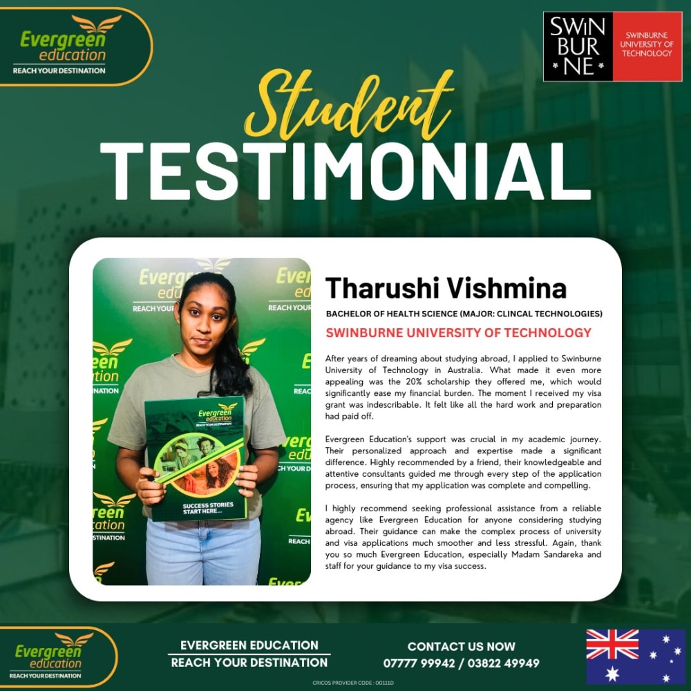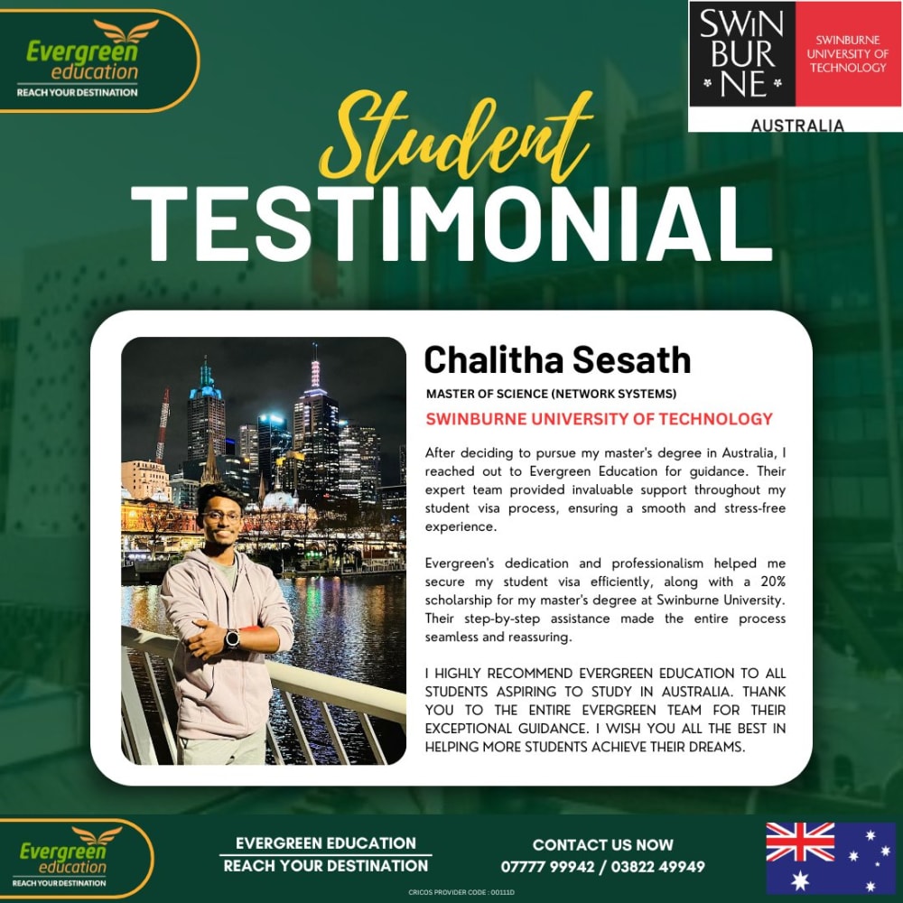 "...I highly recommend Evergreen Education to all students in Sri Lanka and for those who live abroad willing to pursue their higher studies in Australia."